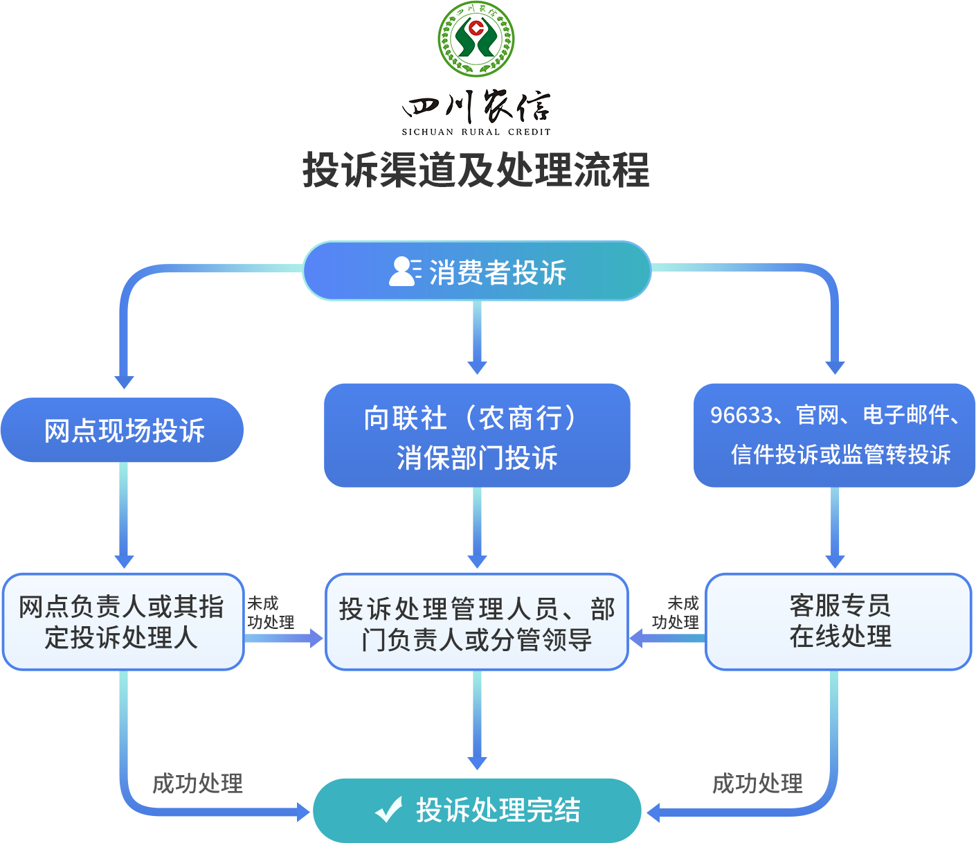 投訴處理時(shí)限: 無(wú)特殊情況,四川農(nóng)信將在受理投訴起十五個(gè)自然日內(nèi)完成投訴處理。